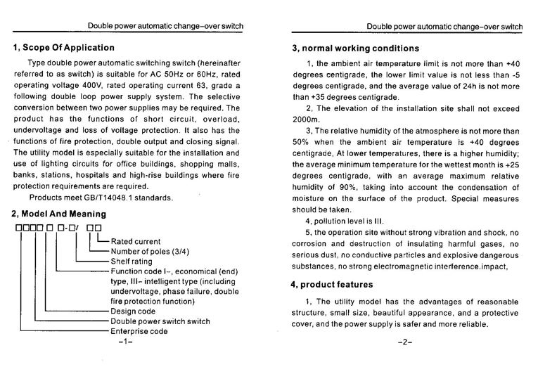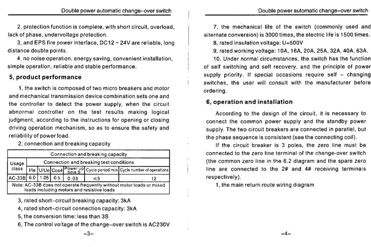 - The automatic transfer switch conforms to IEC60947-6-1 and GB/T14048.11